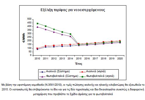 «Τα κόστη βάσει των οποίων έγιναν οι εκτιμήσεις του εθνικού σχεδίου είναι υψηλότερα από την πραγματικότητα της αγοράς. Η δυναμική της αγοράς των φωτοβολταϊκών είναι ευτυχώς τέτοια ώστε να έχουμε σημαντική και ταχεία αποκλιμάκωση των τιμών, κάτι που όλοι οι αναλυτές διεθνώς συμφωνούν. Αυτό και μόνο θα έπρεπε να οδηγήσει σε μεγαλύτερο μερίδιο των φωτοβολταϊκών στο ενεργειακό μίγμα. Χαρακτηριστικά αναφέρουμε ότι, περί το 2015, τα επενδυτικά κόστη για τα αιολικά και τα φωτοβολταϊκά αναμένεται να είναι παραπλήσια, το ίδιο και η τιμή πώλησης της παραγόμενης ηλιακής και αιολικής κιλοβατώρας.