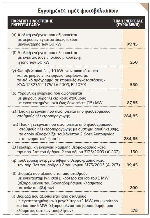 Εγγυημένες Τιμές Φωτοβολταϊκών