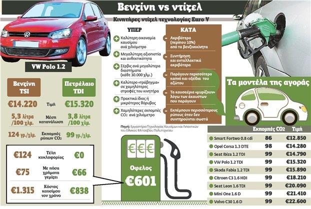 Είναι φιλικά προς το περιβάλλον τα πετρελαιοκίνητα οχήματα ή όχι; Προσδοκίες για δραστική μείωση του κόστους των μετακινήσεων και για να δοθεί το «φιλί της ζωής» στον χειμαζόμενο από την κρίση κλάδο του αυτοκινήτου δημιούργησε η δέσμευση του υπουργού Περιβάλλοντος κ. Γ. Παπακωνσταντίνου για την απελευθέρωση της κυκλοφορίας των πετρελαιοκίνητων ΙΧ αυτοκινήτων στην Αττική και τη Θεσσαλονίκη. Παραλλήλως, η αναφορά του υπουργού άνοιξε έναν ζωηρό διάλογο για τις περιβαλλοντικές επιπτώσεις της απελευθέρωσης, αλλά και για αυτές που ήδη υφίστανται από την ανεξέλεγκτη κίνηση πετρελαιοκίνητων φορτηγών, ταξί και πολλών ελλιπώς συντηρημένων λεωφορείων σε Αθήνα και Θεσσαλονίκη. «Το Βήμα της Κυριακής» ανοίγει τον φάκελο «ντίζελ» και παρουσιάζει τα τελευταία επιστημονικά δεδομένα, το οικονομικό όφελος, τους περιβαλλοντικούς κινδύνους, τις «γκρίζες ζώνες» και τα επιχειρήματα των δύο πλευρών.Τα παλαιού τύπου πετρελαιοκίνητα οχήματα ρυπαίνουν την ατμόσφαιρα κυρίως με αιωρούμενα σωματίδια (ΑΣ)- από τους πιο επικίνδυνους για τη δημόσια υγεία ρύπους. Τα Εuro 5 τα οποία βγήκαν στην αγορά τον προηγούμενο Ιανουάριο (2011) φέρουν τεχνολογία η οποία μειώνει σημαντικά τις εκπομπές των συγκεκριμένων ρύπων. Οι τεχνολογίες όμως αυτές που είχαν στόχο τον έλεγχο των εκπεμπόμενων από τα ντιζελοκίνητα αιωρούμενων σωματιδίων (ΑΣ) αυξάνουν τις εκπομπές οξειδίων του αζώτου, τα οποία με τη σειρά τους συμβάλλουν στη δημιουργία των ρύπων του όζοντος οι οποίοι δημιουργούν την αποπνικτική ατμόσφαιρα κάθε καλοκαίρι. Το πρόβλημα πιθανώς θα επιλυθεί με τα Εuro 6, τα οποία θα κυκλοφορήσουν το 2014 (ορισμένες αυτοκινητοβιομηχανίες παράγουν ήδη πετρελαιοκίνητα με τεχνολογία Εuro 6).