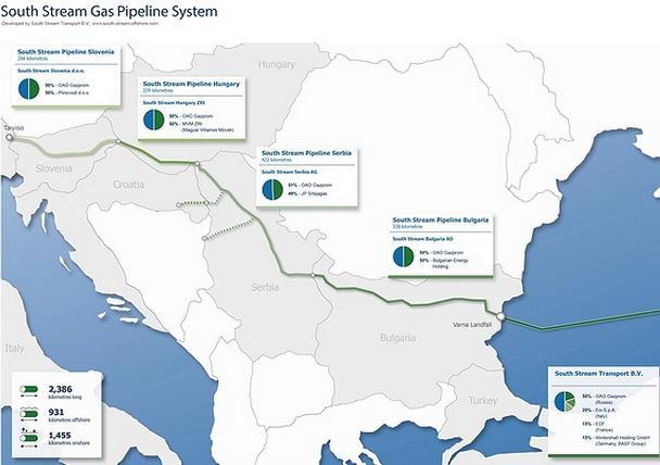 Μέτοχοι στο έργο του South Stream είναι οι εταιρείες Gazprom (50%), Eni(20%), EDF (15%) και Wintershall (15%).